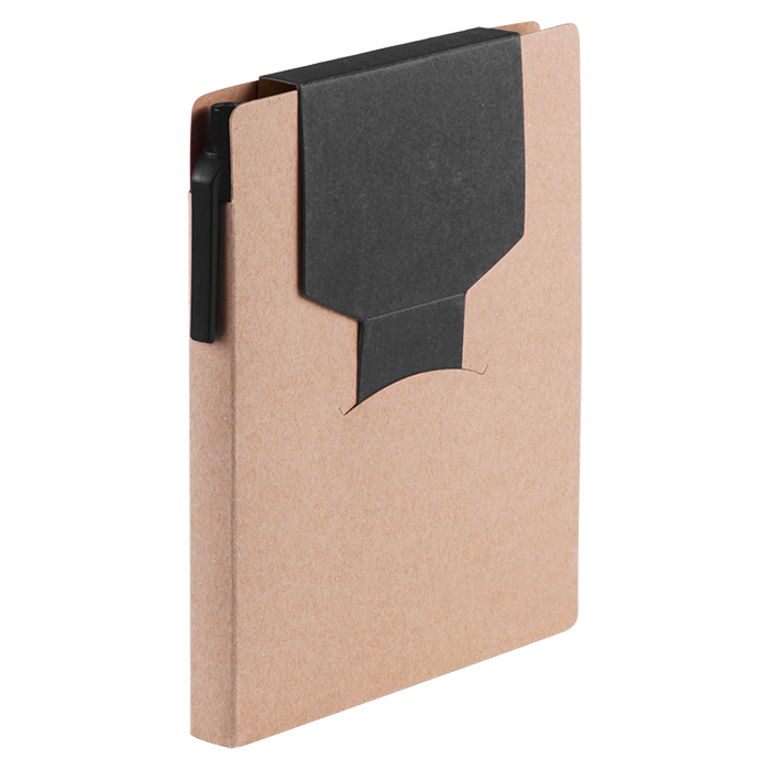 Sticky notepad with matching color recycled cardboard ball pen included