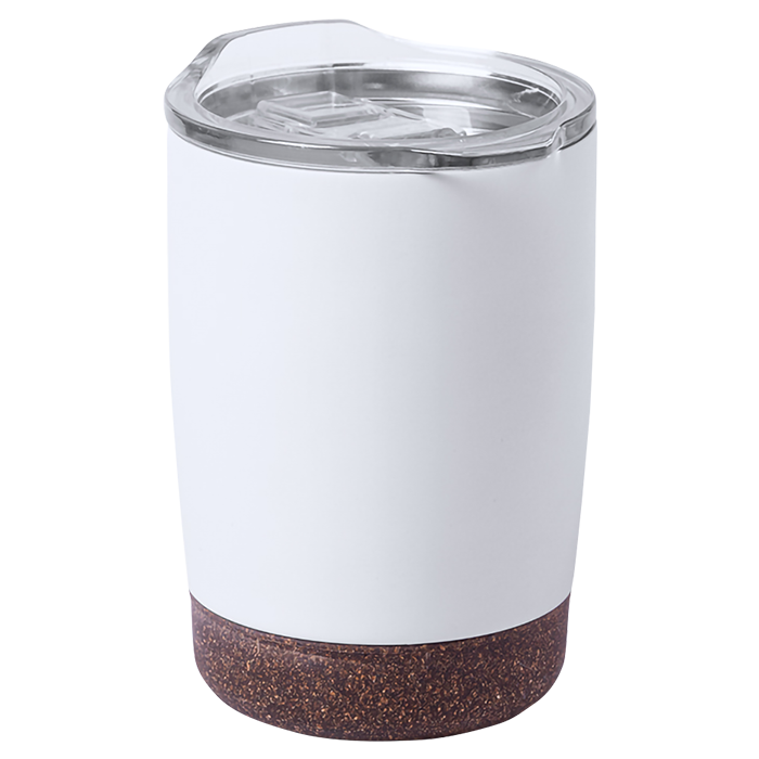 Combination of base in natural cork and body in stainless steel of white color finishing